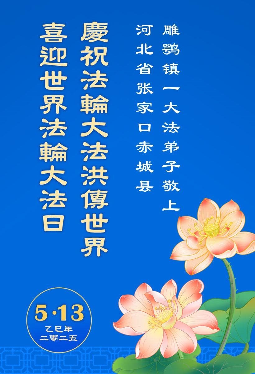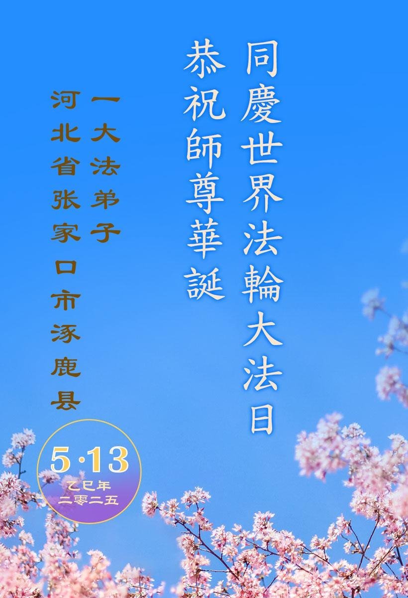 【明慧网二零二五年五月十六日】 河北省张家口市直机关大法弟子恭祝师尊华诞暨世界法轮大法日!师尊生日快乐!
