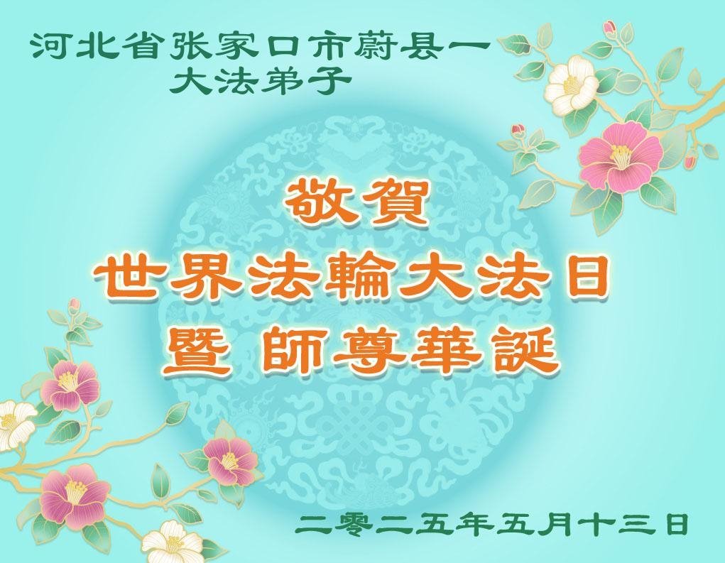恭祝师父生日快乐! 感恩师父慈悲救度! 河北省张家口市怀来县 二零二五年五月十三日 河北省张家口市蔚县大法弟子敬贺世界法轮大法日暨师尊华诞!