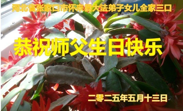 二零二五年五月十三日 河北省张家口市怀来县一大法弟子女儿全家三口恭祝师父生日快乐!