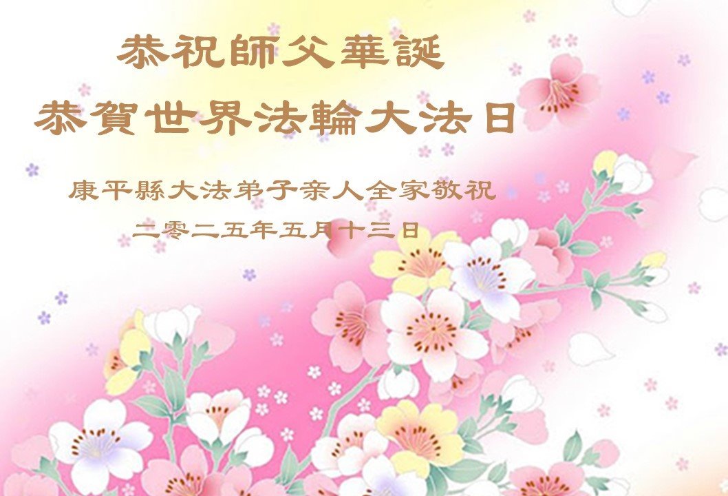 【明慧网二零二五年五月十六日】 辽宁省沈阳市康平县一大法弟子的亲人全家恭祝师尊华诞暨世界法轮大法日!