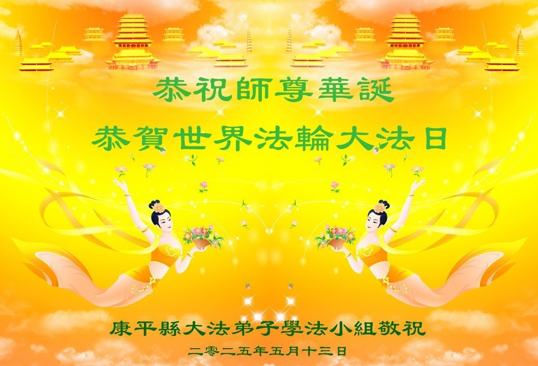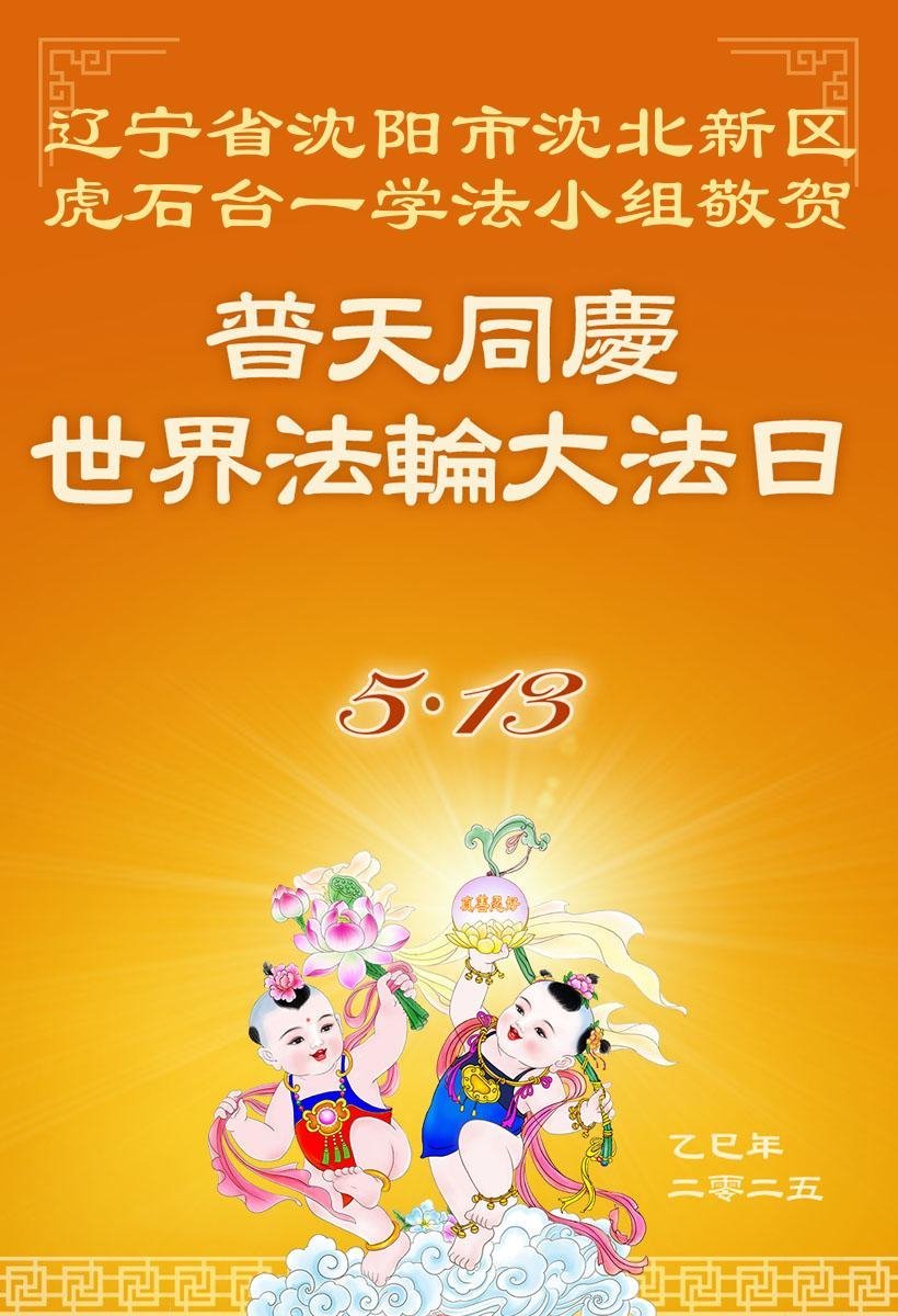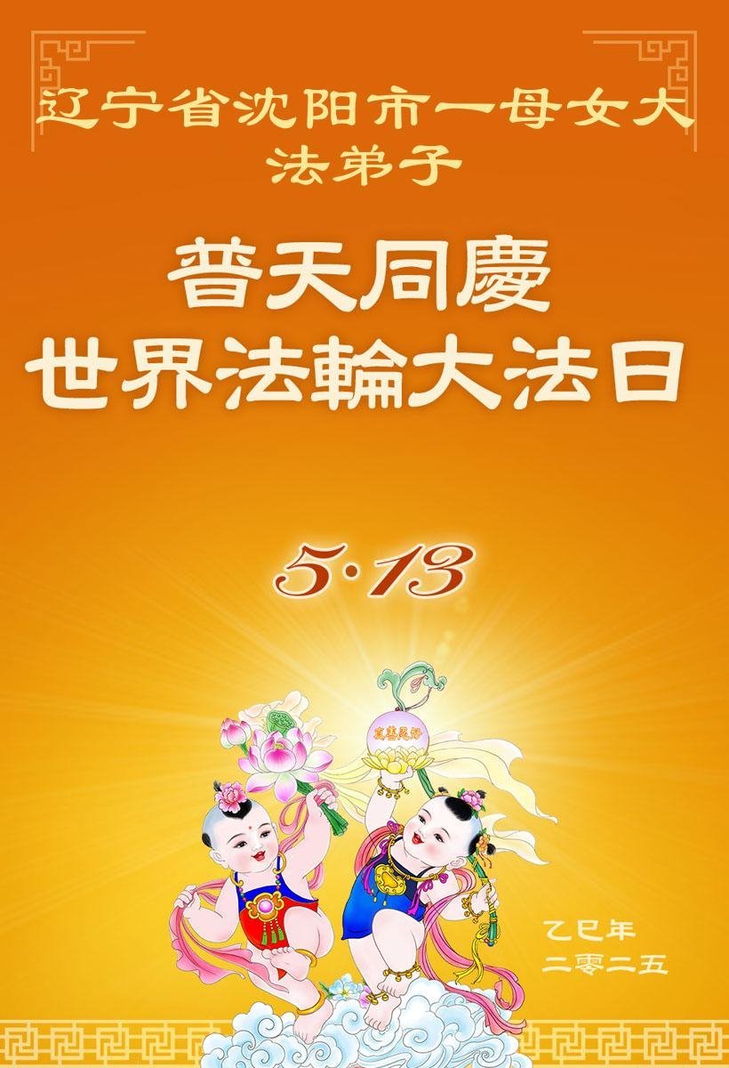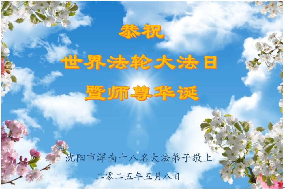 敬贺世界法轮大法日暨师尊华诞!无限感恩师尊慈悲救度!法轮大法好!真善忍好!叩拜师尊! 辽宁省沈阳市沈北新区大法弟子 二零二五年五月十三日 恭贺世界法轮大法日