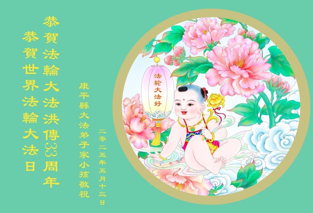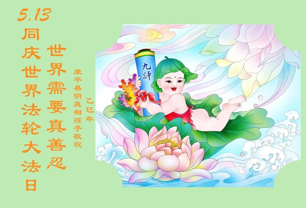 普天同庆世界法轮大法日!恭祝师尊生日快乐!我们学法小组全体成员互相勉励、比学比修、共同精進!叩拜师尊! 二零二五年五月十三日 辽宁沈阳市一大法弟子家孩子恭贺世界法轮大法日!