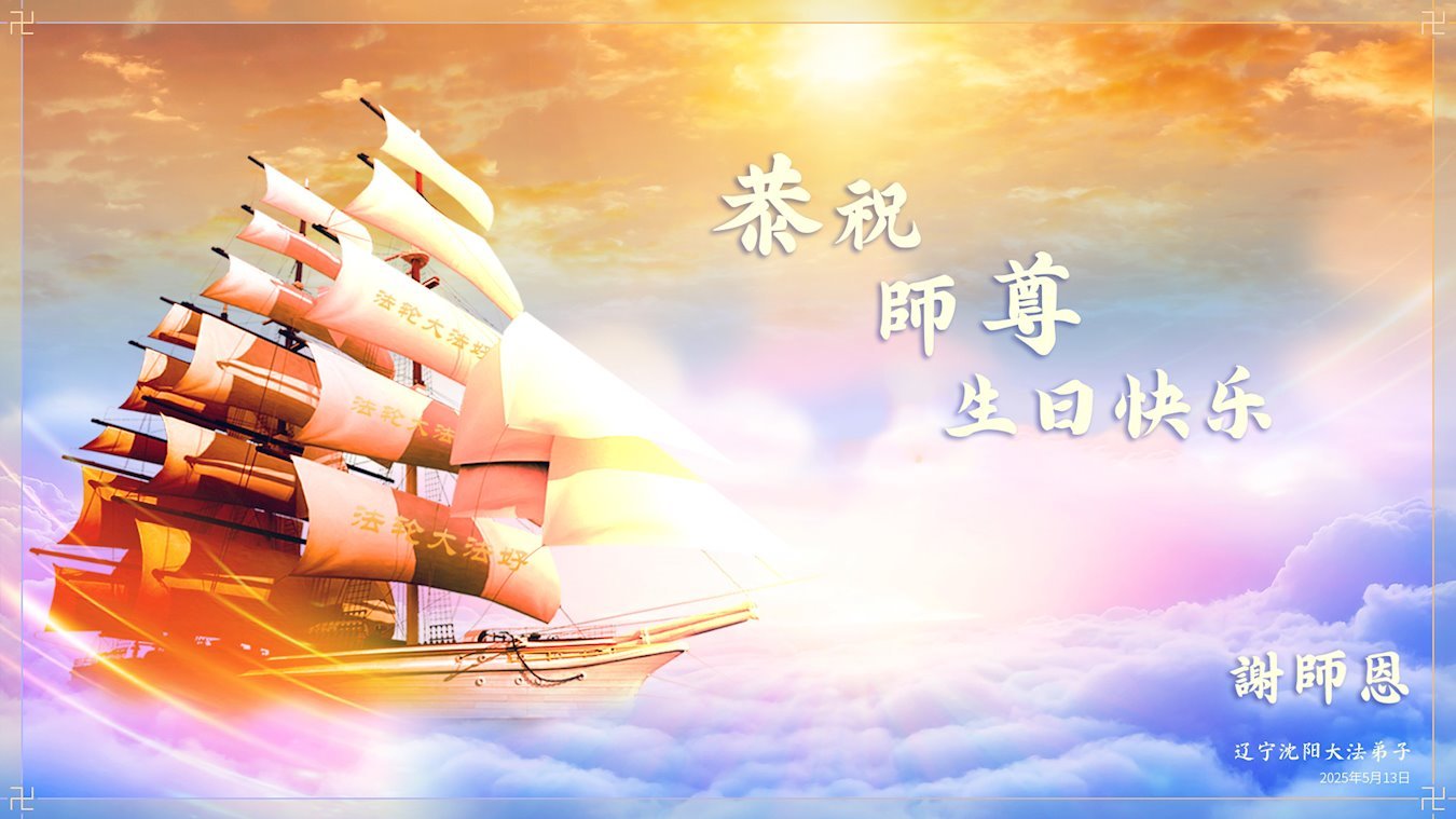 感恩师尊慈悲苦度!盼望早日在大陆看到师尊与神韵! 二零二五年五月十二日 辽宁省沈阳市于洪区大法弟子恭祝师父生日快乐!