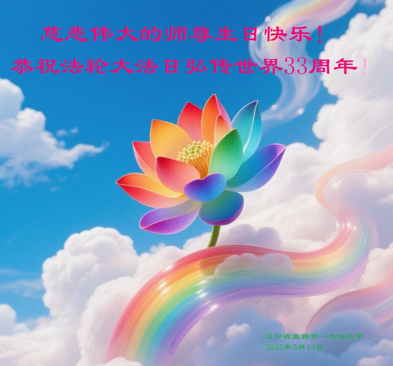 【明慧网二零二五年五月十六日】 辽宁省盘锦市大法弟子恭祝师尊生日快乐!