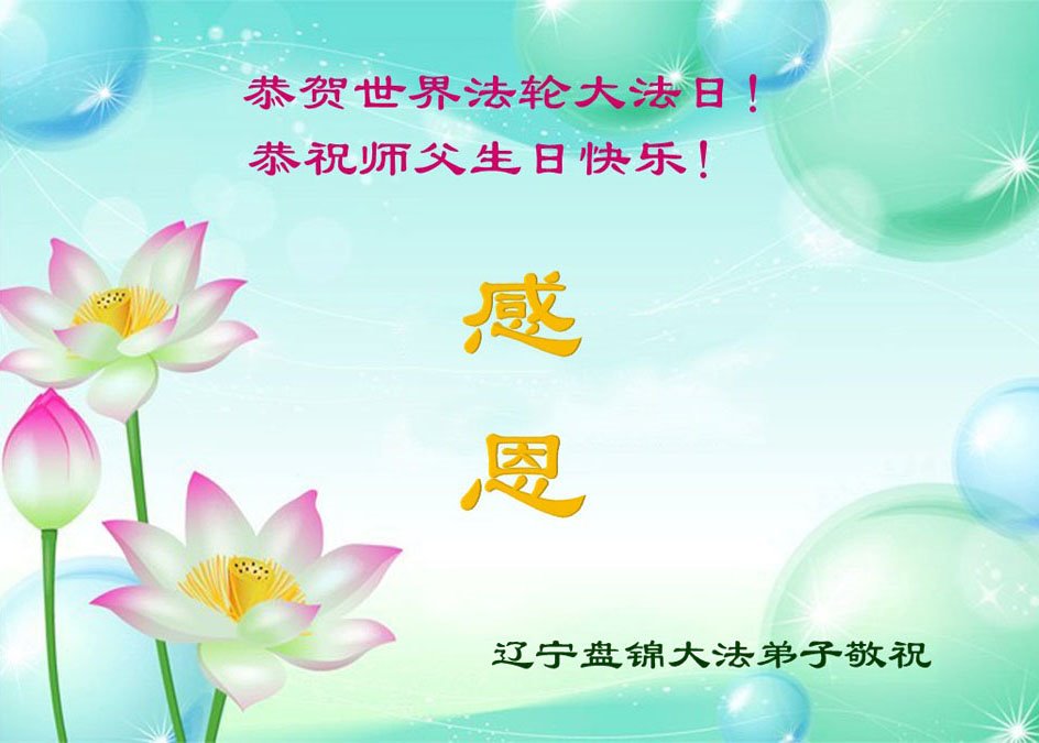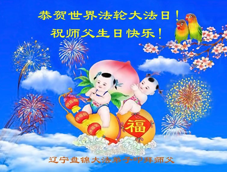 辽宁省盘锦一大法弟子恭祝慈悲伟大的师尊生日快乐!同祝世界法轮大法日!叩谢师尊救度洪恩!
