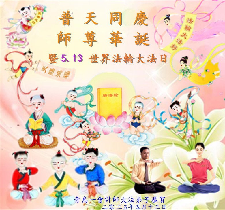 感恩师尊慈悲救度! 我要听师父的话,实修自己,跟师父回家! 青岛市一大法小弟子叩拜 二零二五年五月十二日 山东省青岛市一会计师大法弟子恭贺世界法轮大法日!