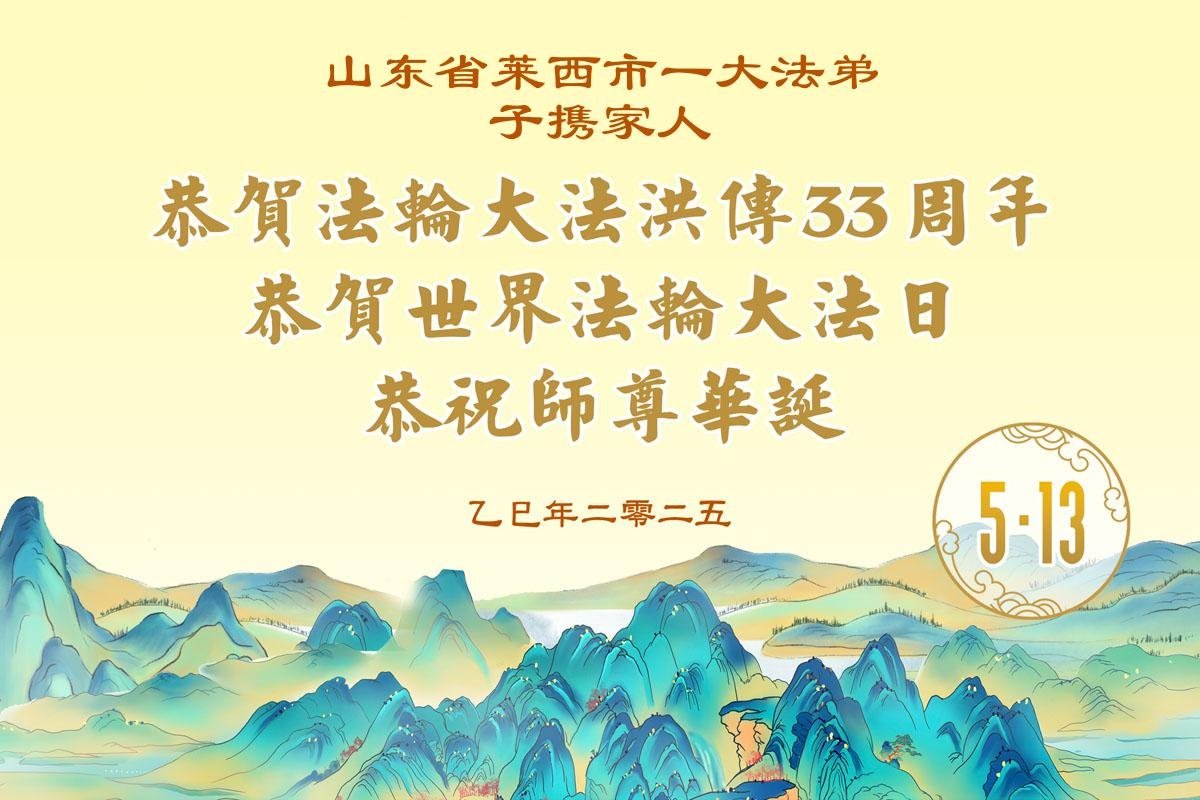 恭贺世界法轮大法日! 山东省青岛市莱西市一大法弟子及家人恭祝师尊华诞暨世界法轮大法日!
