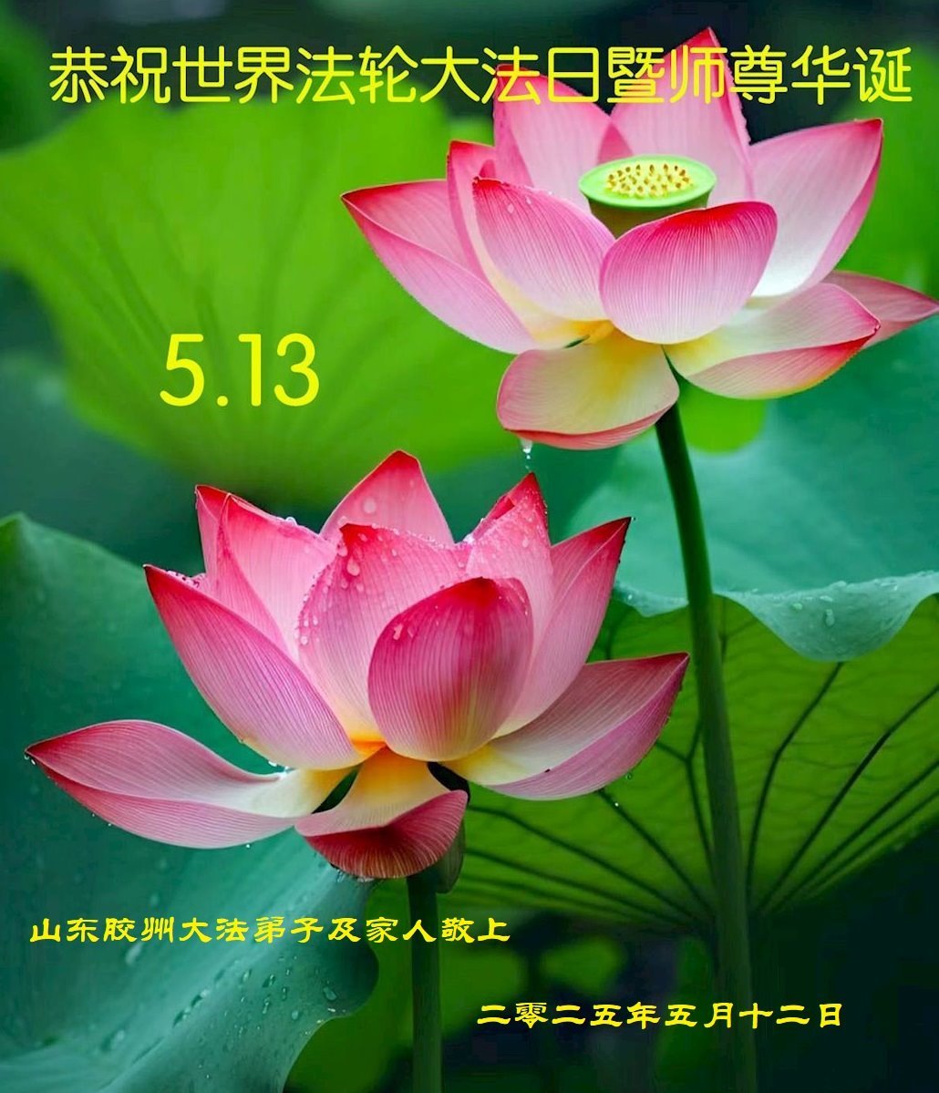 胶州市一大法弟子及家人敬上 二零二五年五月十二日 山东省青岛市大法弟子恭贺世界法轮大法日!