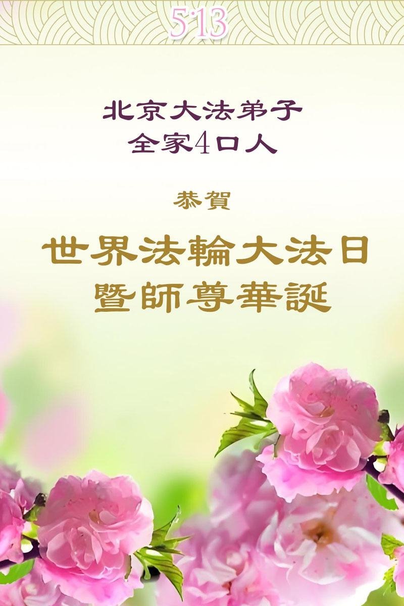【明慧网二零二五年五月十六日】 北京大法弟子及全家4口人恭祝慈悲伟大的师尊生日快乐!