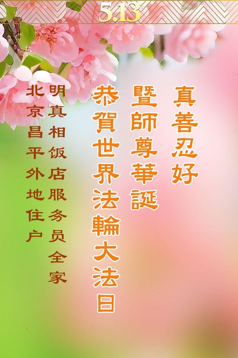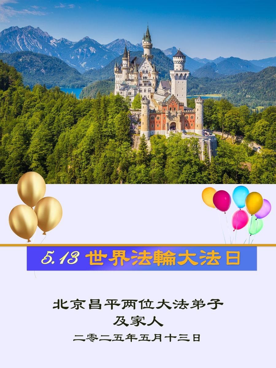 北京昌平大法弟子全家2口恭祝师尊生日快乐! 二零二五年五月十三日 北京昌平外地住户明真相饭店服务员全家恭祝李大师生日快乐!