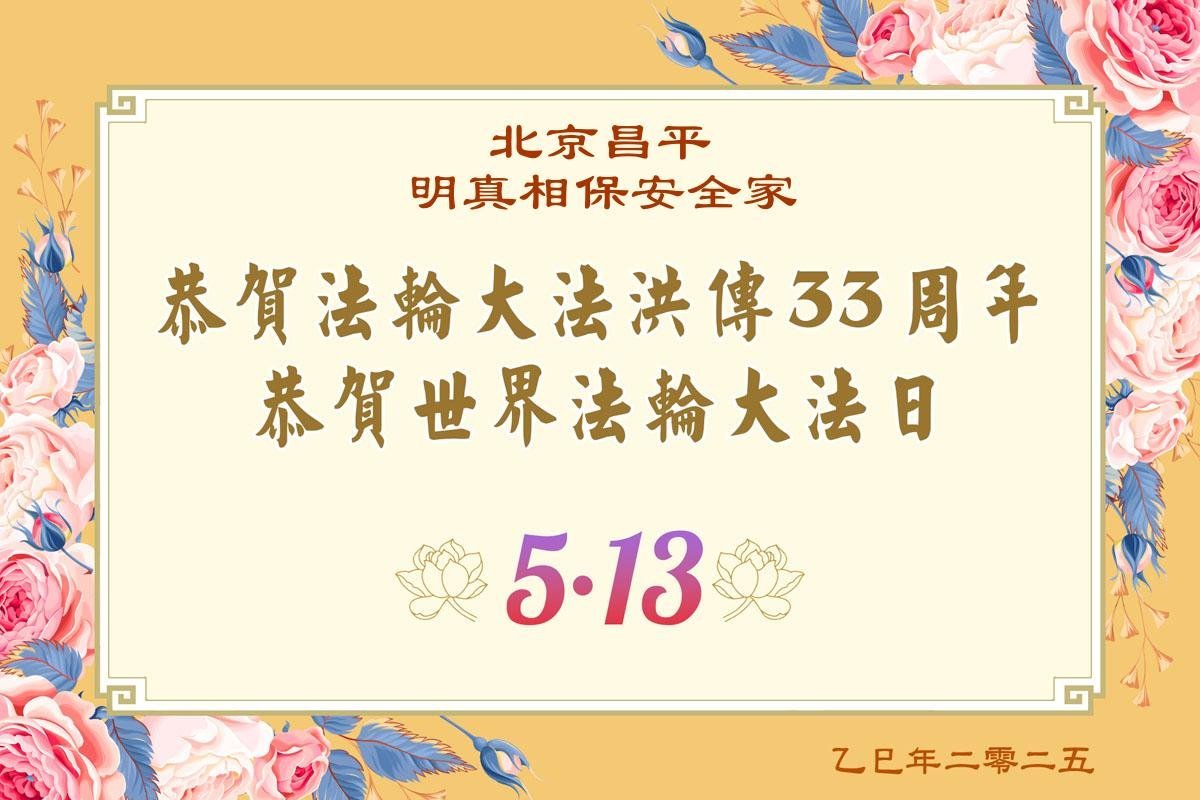 北京昌平外地住户明真相收废品老板全家5口,祝李洪志师父,生日快乐!早日回国! 二零二五年五月十三日 北京昌平明真相大队干部全家4口,恭祝李洪志大师,生日快乐!早日回国!