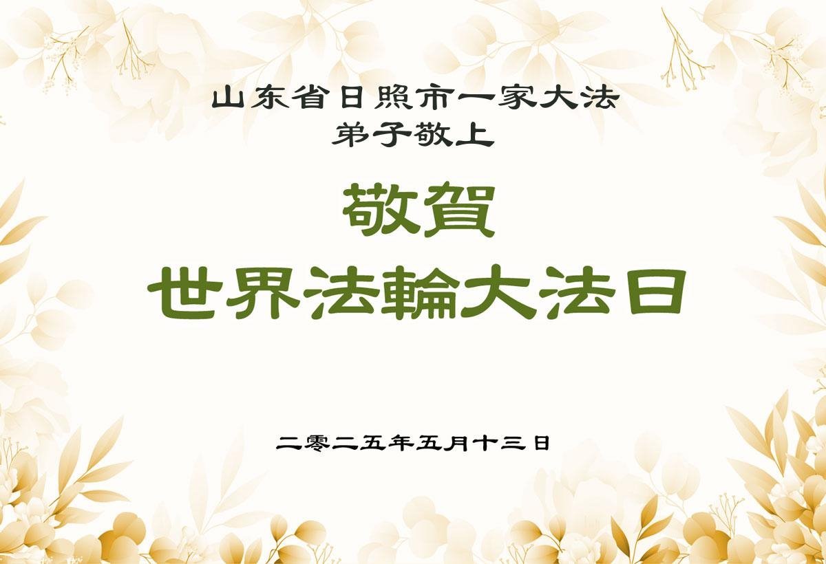 山东省日照市一家大法弟子 二零二五年五月十二日 山东烟台大法弟子全家恭祝师尊生日快乐!恭贺世界法轮大法日!
