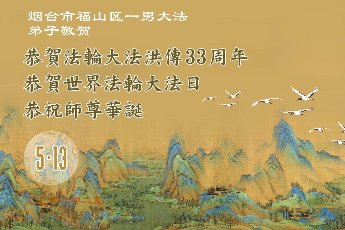 恭祝师父生日快乐!一年一度的“5·13”世界法轮大法日到了,恭祝师父生日快乐!感谢伟大慈悲的恩师又为我们操劳了一年!我能感觉到师父就在我的身边,我走的每一步,师父都在看护着我,保护着我,师父,您辛苦了!我无以为报,只有精進,学好法,做好三件事,不负师父重望。谢谢师父! 山东省烟台市龙口市一大法弟子 二零二五年五月十二日 山东省烟台市福山区一大法弟子恭贺法轮大法洪传三十三周年!