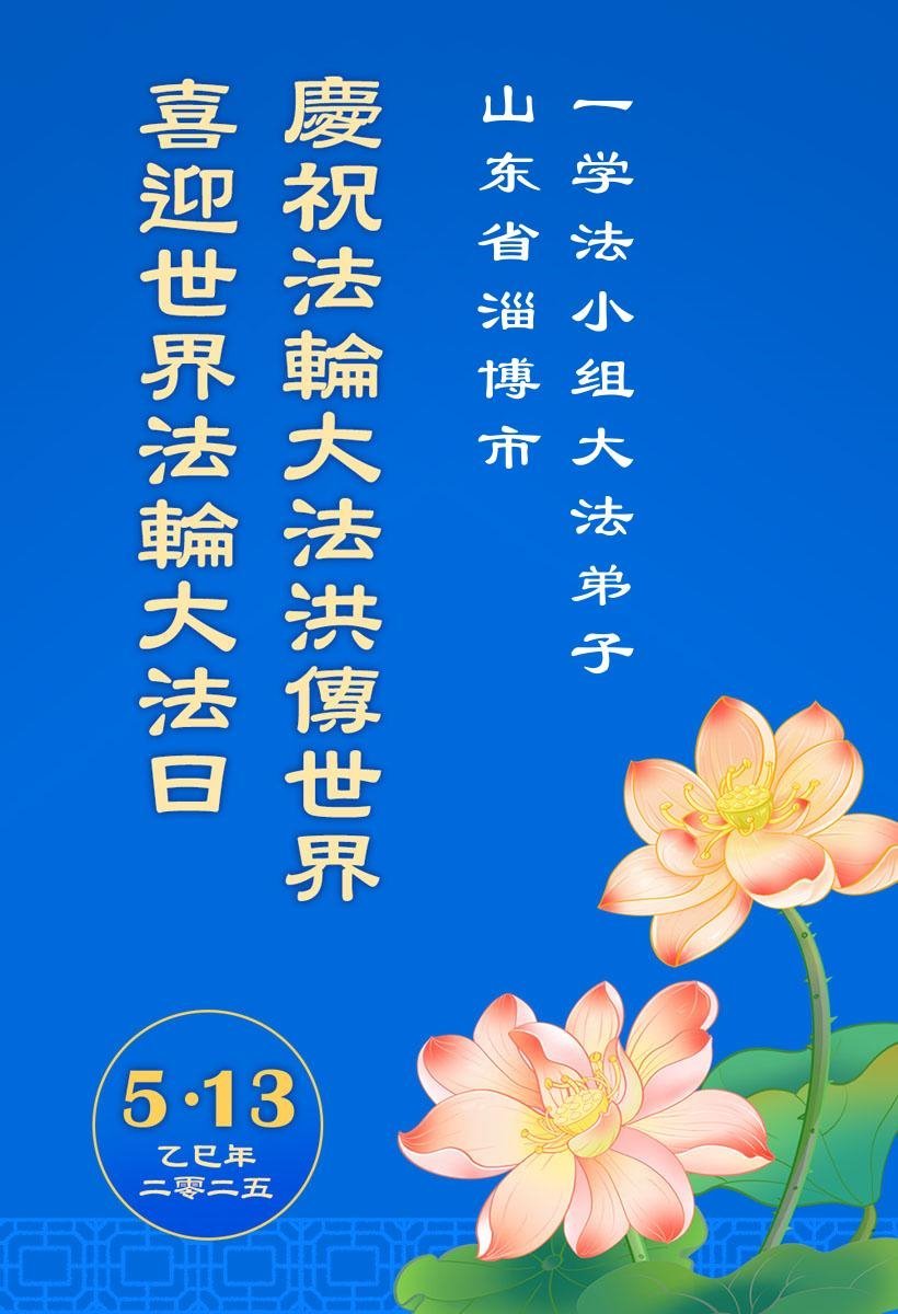 山东省烟台市一大法弟子 二零二五年五月十三日 山东省淄博市大法弟子庆祝世界法轮大法日!