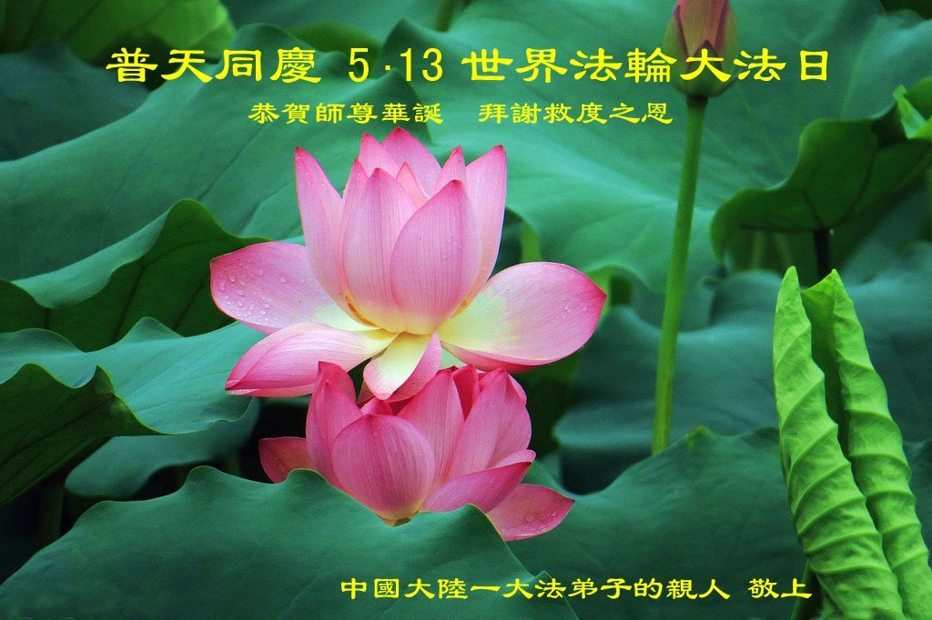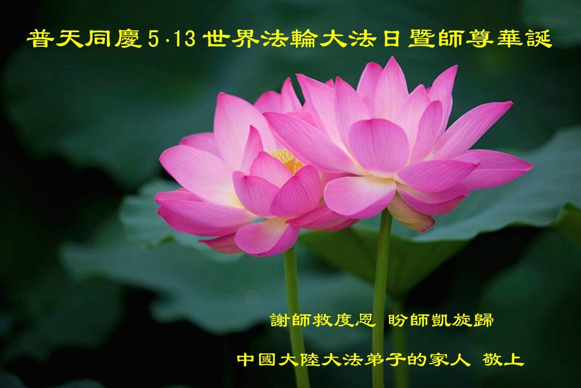 普天同庆世界法轮大法日!盼望师尊早日凯旋归来! 中国大陆大法弟子的家人恭贺世界法轮大法日暨敬祝师尊华诞!