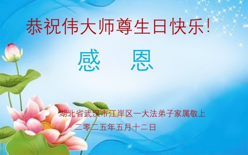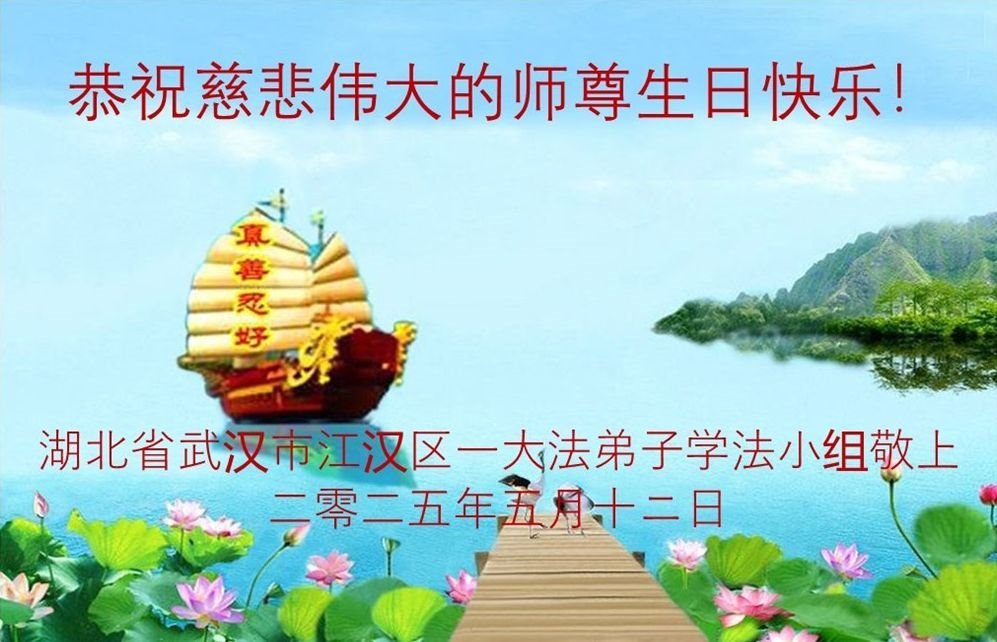 二零二五年五月十三日 湖北省武汉市江汉区一大法弟子学法小组大法弟子恭祝慈悲伟大的师尊生日快乐!