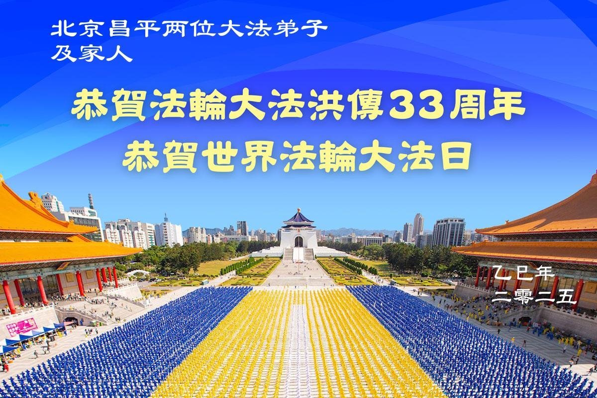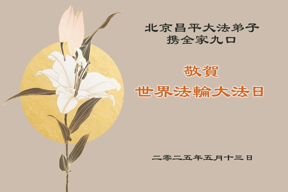 恭贺师尊华诞暨法轮大法洪传三十三周年!恭祝师尊生日快乐!叩拜师尊!师父,您辛苦了!法轮大法好!真善忍好! 北京市大法弟子 二零二五年五月十三日 北京昌平区一大法弟子的丈夫代表全家庆祝法轮大法日!