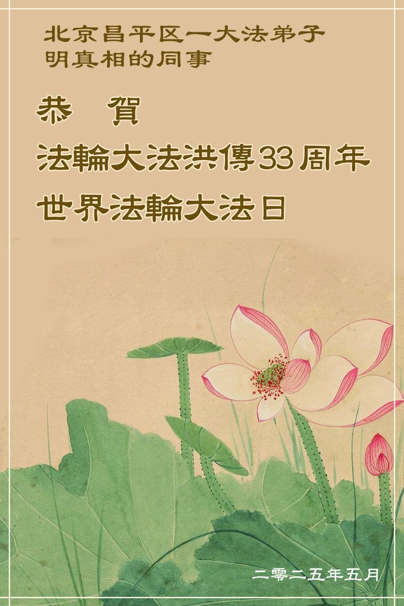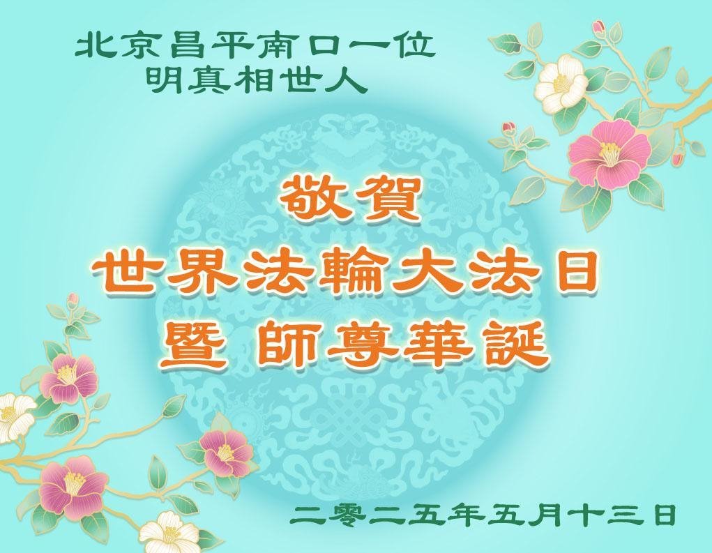 北京市顺义区一大法弟子恭贺世界法轮大法日!师尊生日快乐!