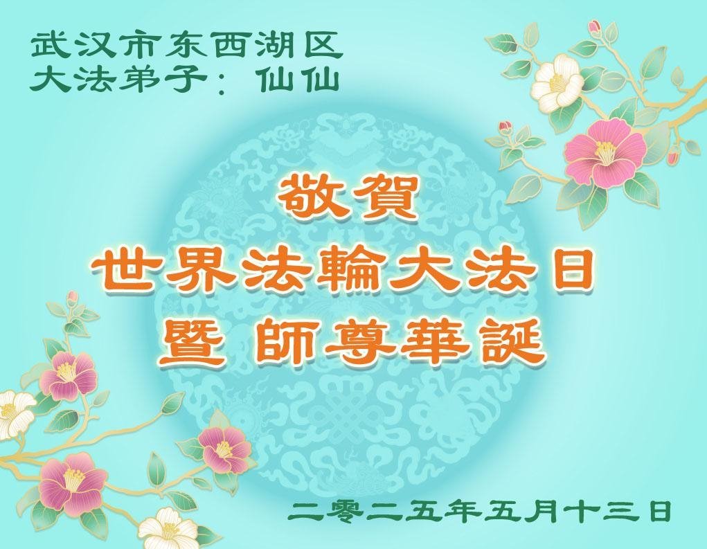 感谢师尊的慈悲苦度,师父您辛苦了! 湖北省武汉市洪山区大法弟子 二零二五年五月十二日 湖北省直辖行政单位潜江市大法弟子庆祝世界法轮大法日!