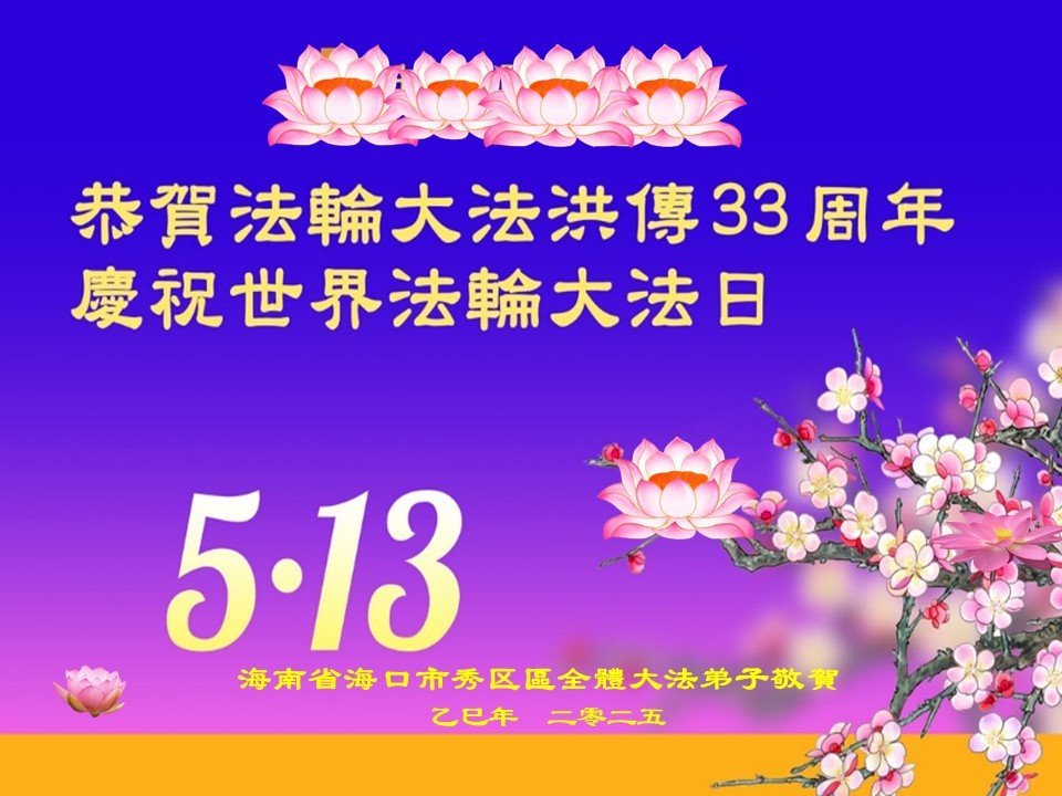 法轮大法好!真善忍好! 海南省海口市秀英区大法弟子敬上 广东省广州大法弟子恭祝世界法轮大法日!
