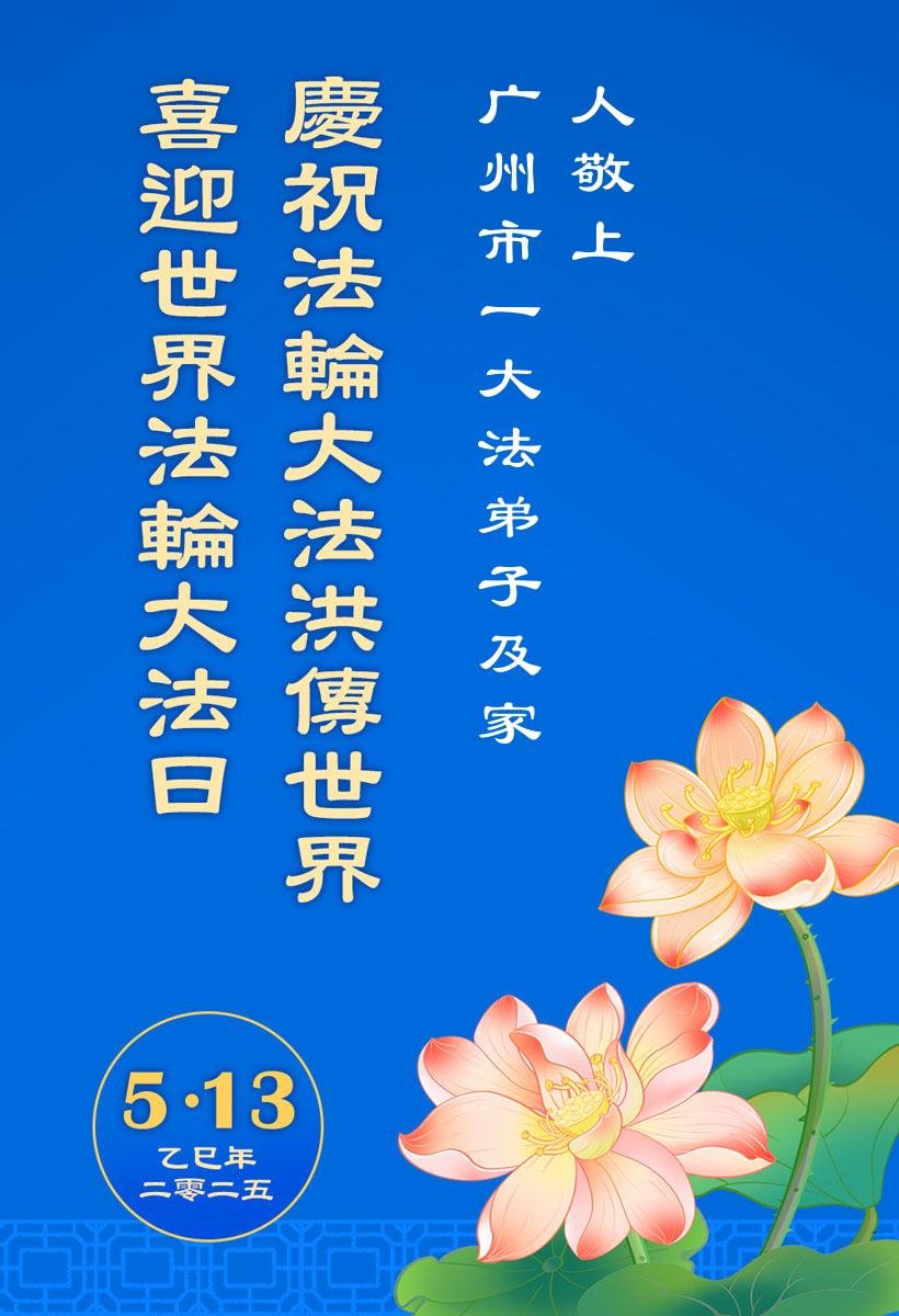广东省广州市天河区一大法弟子及家人恭贺世界法轮大法日!