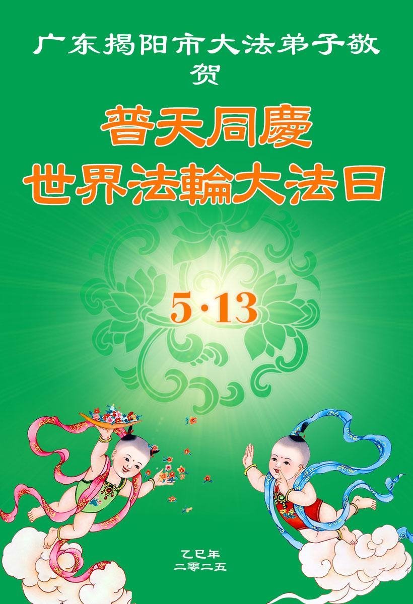 恭祝师尊华诞!庆祝法轮大法洪传33周年暨第二十六届世界法轮大法日!法轮大法好!真善忍好!愿更多有缘的生命喜得救度!广东揭阳市大法弟子敬上 二零二五年五月十二日 广东省潮汕地区全体大法弟子恭祝慈悲伟大的李洪志师尊生日快乐!庆祝世界法轮大法日!
