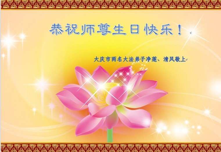 普天同庆世界法轮大法日! 黑龙江省大庆市两名大法弟子恭祝师尊生日快乐!