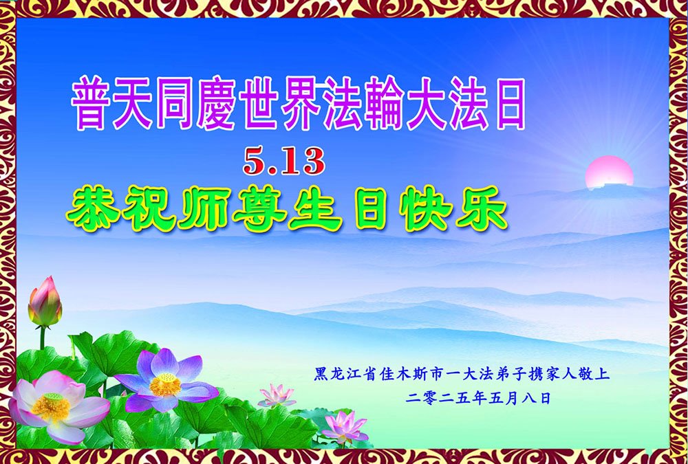 剩下的时间弟子一定坚定实修! 恭祝师尊生日快乐! 哈尔滨市大法弟子 二零二五年五月十二日 黑龙江省大法弟子庆祝世界法轮大法日!
