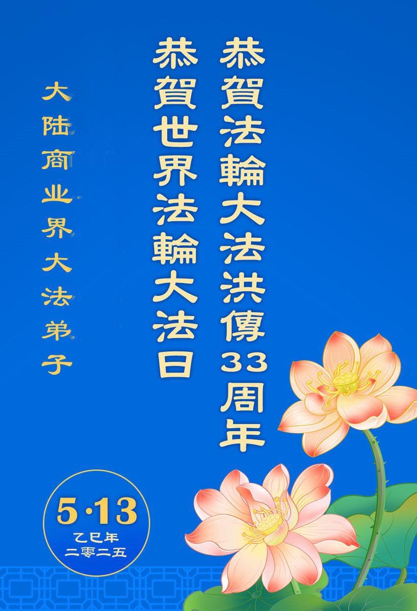 大法弟子是世人得救的希望,弟子定精進实修多学法做好三件事圆满随师还。弟子叩谢恩师。 大陆大法弟子敬上 二零二五年五月十日 大陆商业界大法弟子恭贺世界法轮大法日!恭祝师尊生日快乐!