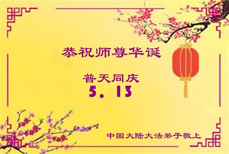 大陆大法弟子恭祝师尊生日快乐!