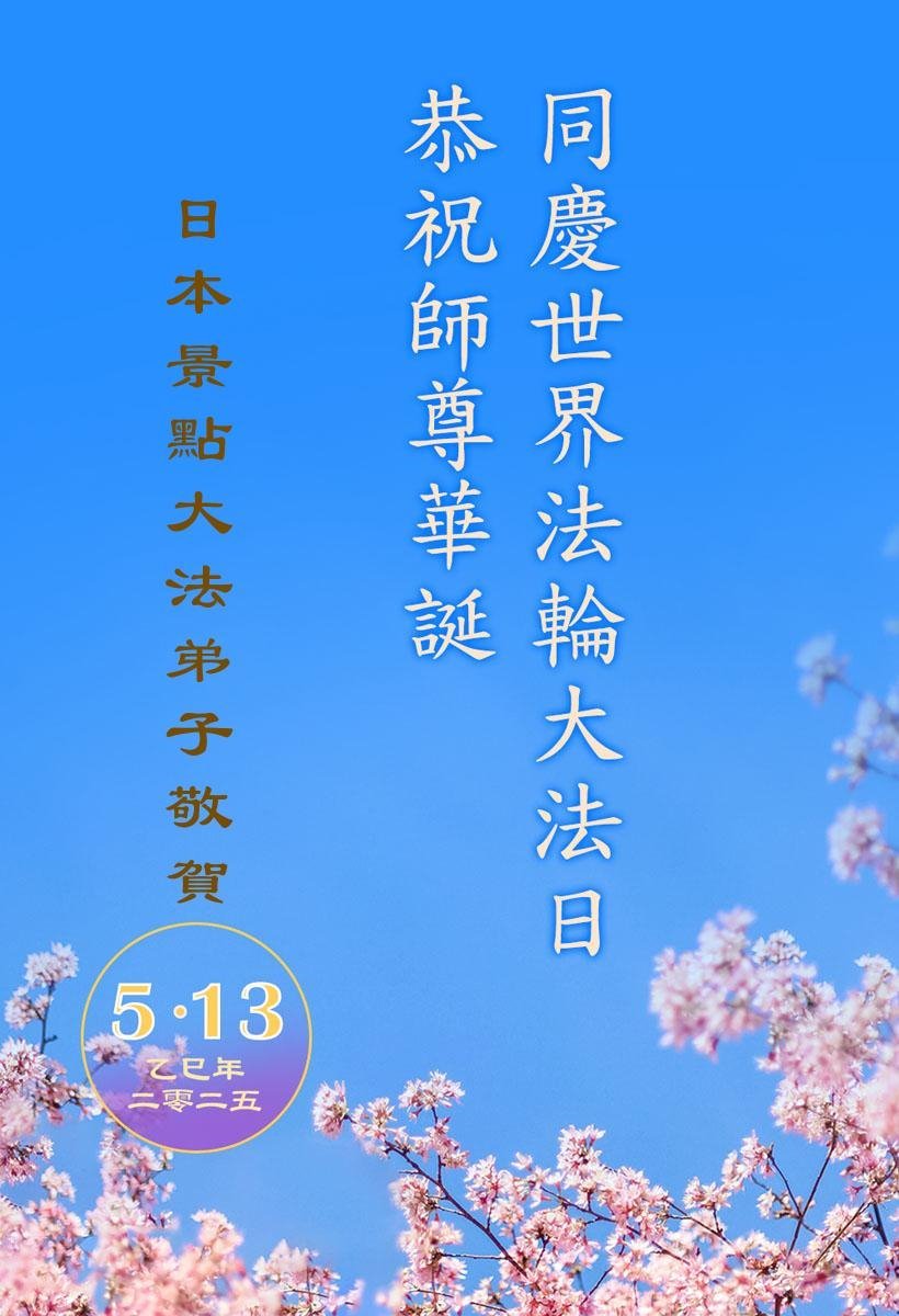 日本景点大法弟子恭贺世界法轮大法日!恭祝师尊华诞!