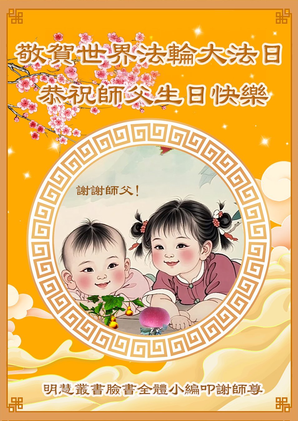 师父您辛苦了! 谢谢师父慈悲救度! 弟子想念您! 明慧丛书脸书全体小编大法弟子敬上 明慧电视小组全体大法弟子恭贺世界法轮大法日!恭祝师父生日快乐!