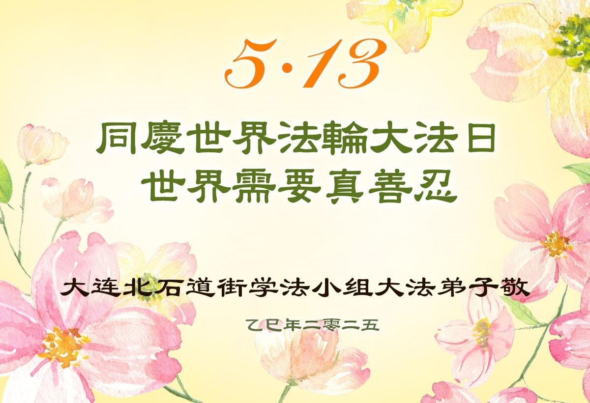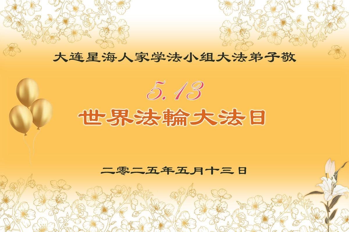 【明慧网二零二五年五月十七日】 辽宁省大连市化物所学法小组大法弟子恭祝慈悲伟大的师父生日快乐!普天同庆世界法轮大法日!