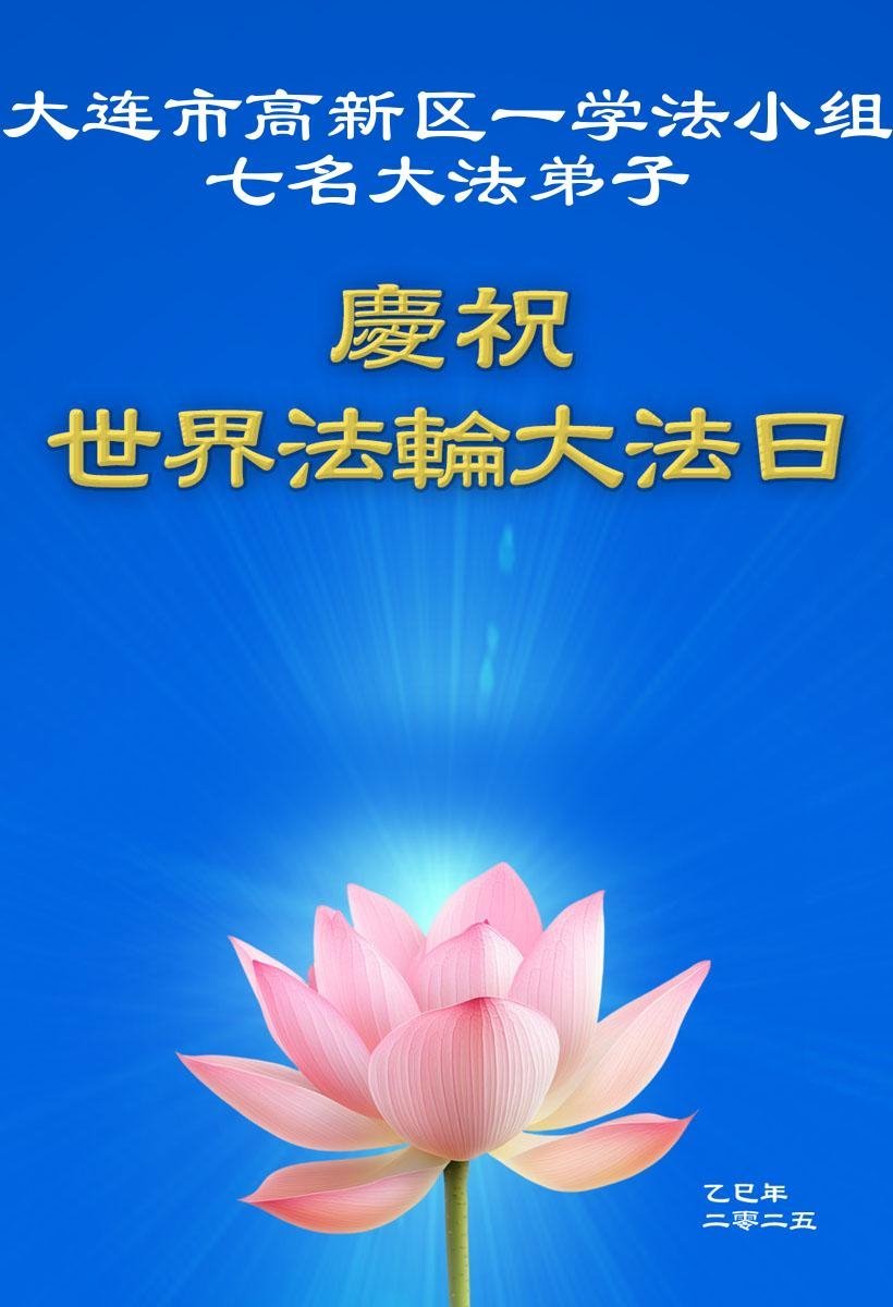 辽宁省大连市学法组六位大法弟子恭祝师尊生日快乐!恭贺世界法轮大法日!恭贺法轮大法洪传33周年!