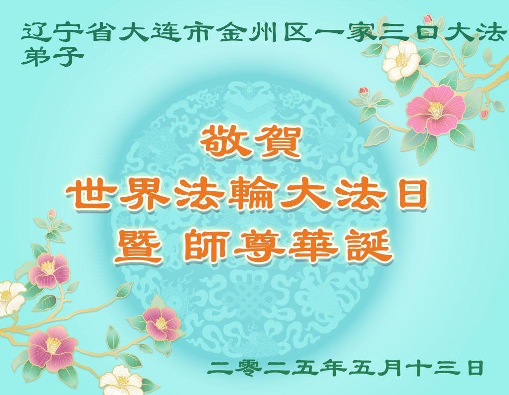 辽宁大连大法弟子一家恭祝师父生日快乐!敬贺世界法轮大法日!