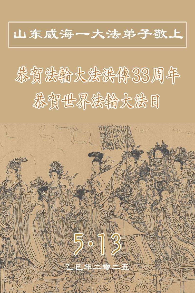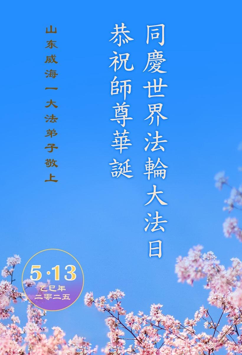 山东威海一大法弟子恭贺法轮大法洪传33周年!恭祝师尊生日快乐!