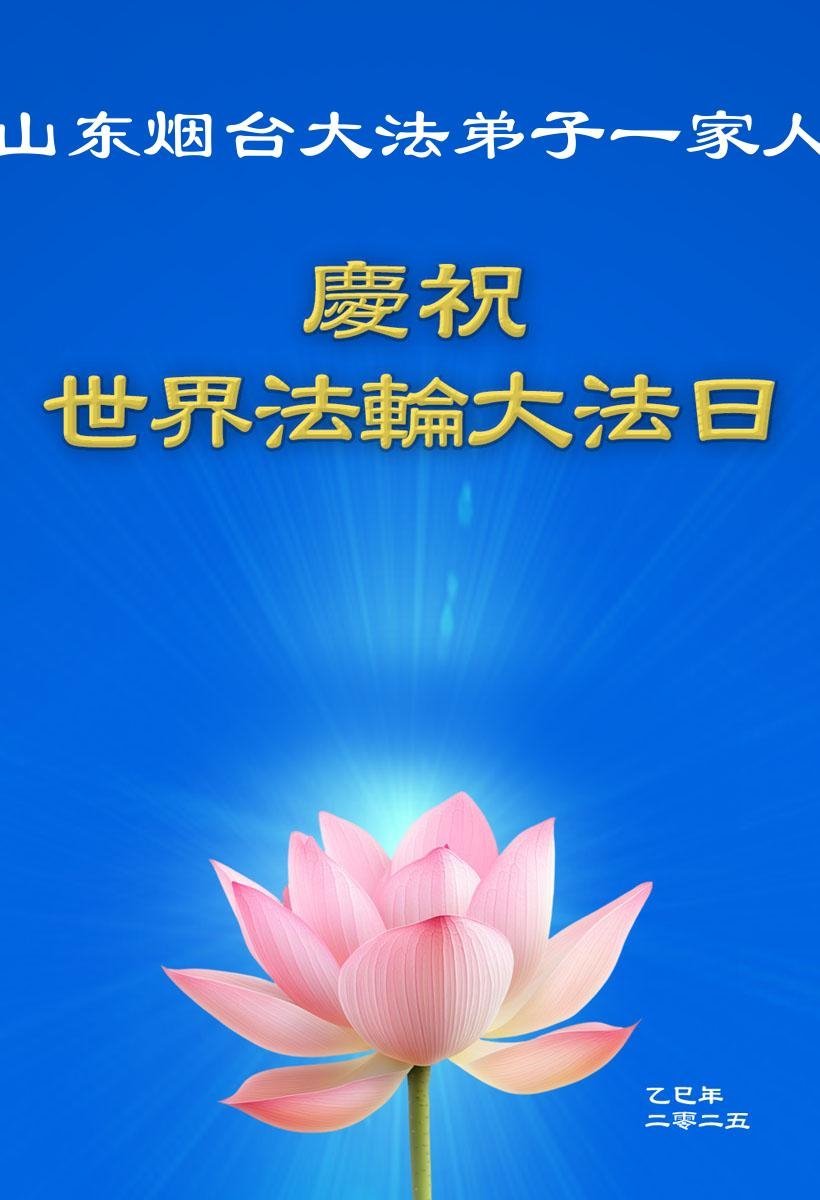山东烟台大法弟子敬贺世界法轮大法日!