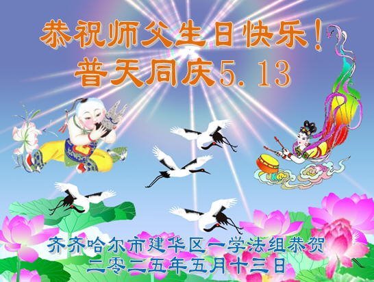 黑龙江省齐齐哈尔市建华区一学法组恭贺世界法轮大法日暨师尊华诞!