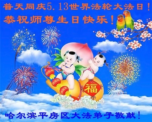 黑龙江省哈尔滨市平房区大法弟子恭祝师尊生日快乐!