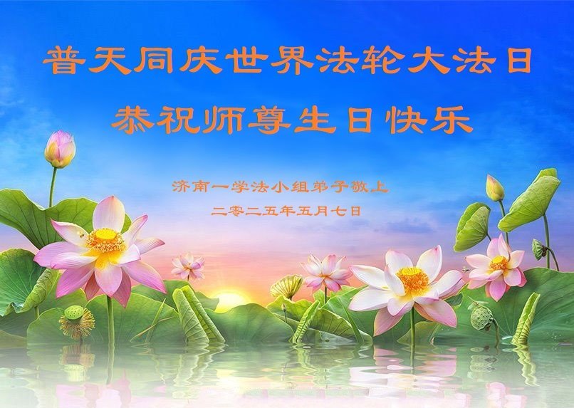 弟子要精進实修,不辜负师尊苦度,在这历史的关键时刻,完成自己的使命,学好法,多救人,做好三件事。跟师尊回家。 山东省济南市市中区大法弟子恭贺世界法轮大法日!