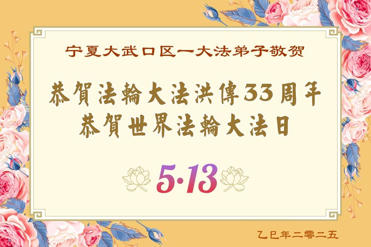 【明慧网二零二五年五月十七日】 宁夏石嘴山市大武口区一大法弟子恭贺世界法轮大法日暨师尊华诞!