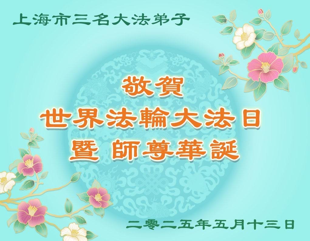 上海市三名大法弟子敬贺世界法轮大法日暨师尊华诞!