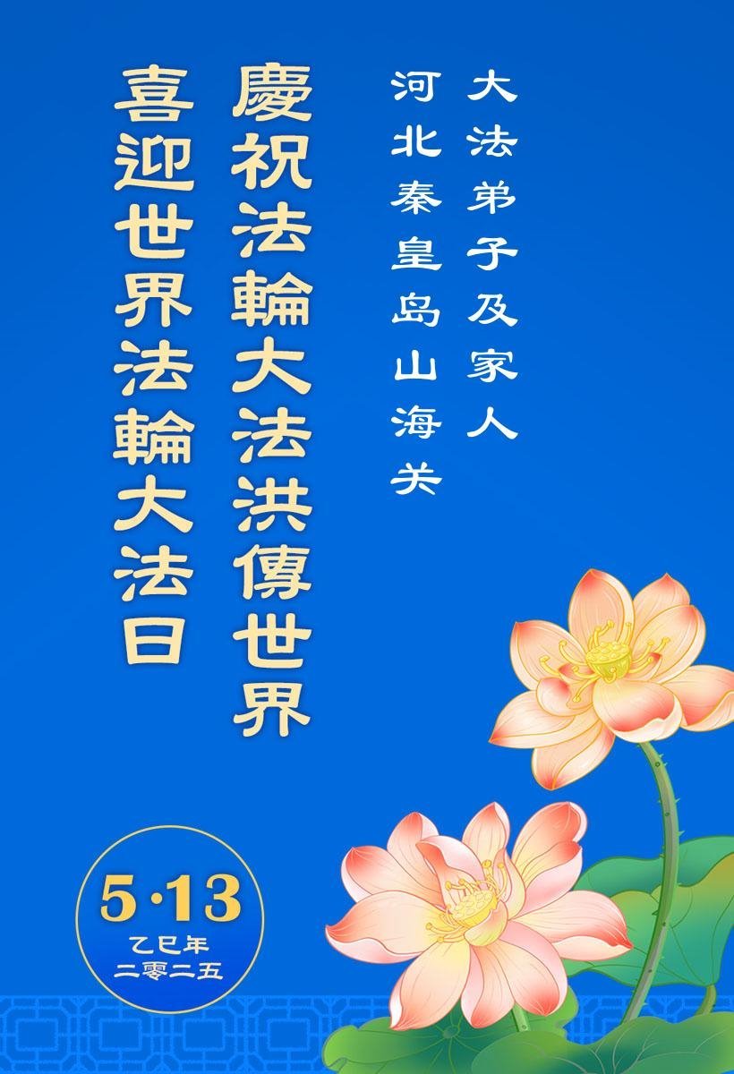 河北省秦皇岛一学法小组大法弟子恭贺世界法轮大法日暨师尊华诞!