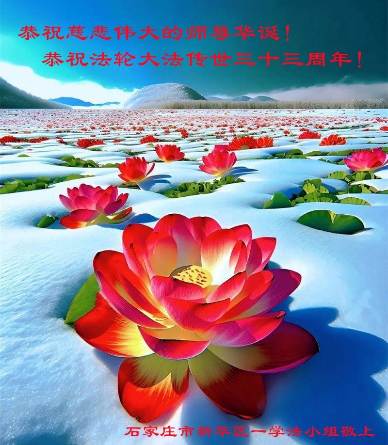 师父您辛苦了!弟子千言万语道不尽师尊的慈悲保护!弟子唯有精進实修、去执、完成使命,以报师恩。 河北省石家庄大法弟子恭祝师尊华诞!恭祝法轮大法传世三十三周年!