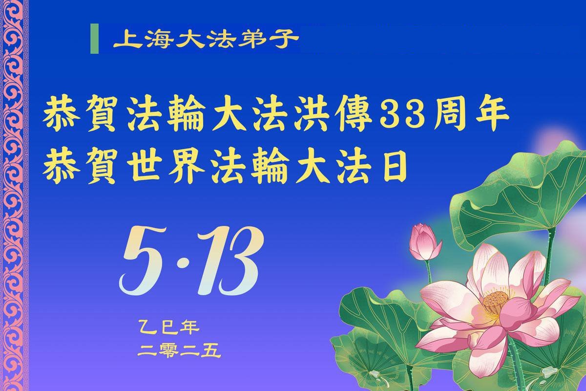 上海市一学法小组大法弟子恭贺世界法轮大法日!