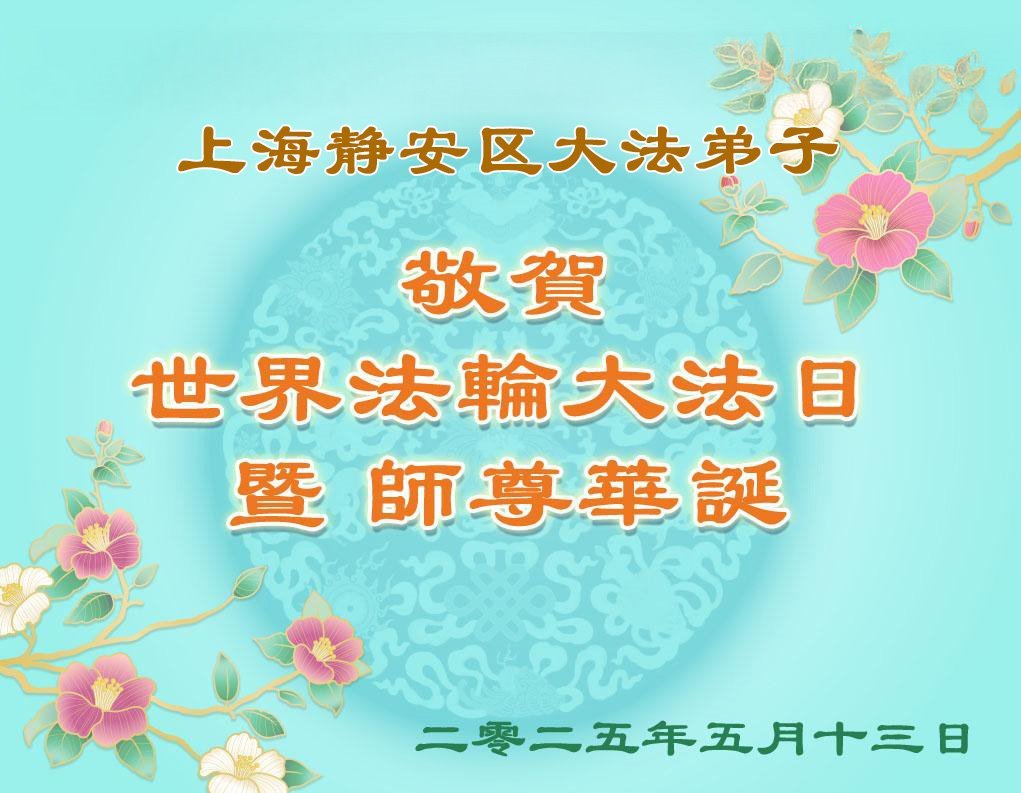 师尊辛苦了! 弟子们恭贺世界法轮大法日! 恭祝师尊生日快乐! 上海大法弟子敬上 二零二五年四月二十五日 上海静安区大法弟子恭贺世界法轮大法日暨师尊华诞!