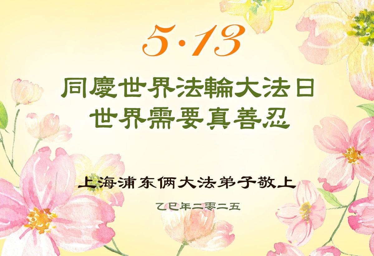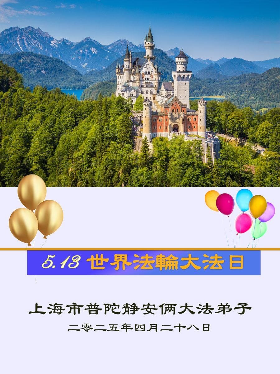 【明慧网二零二五年五月九日】 上海松江一大法弟子恭贺世界法轮大法日!感恩师尊给予的一切!