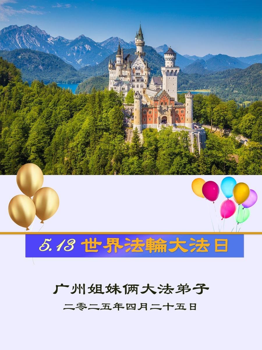 【明慧网二零二五年五月九日】 广东省广州市大法弟子恭祝慈悲伟大的师尊华诞!同庆5.13世界法轮大法日!
