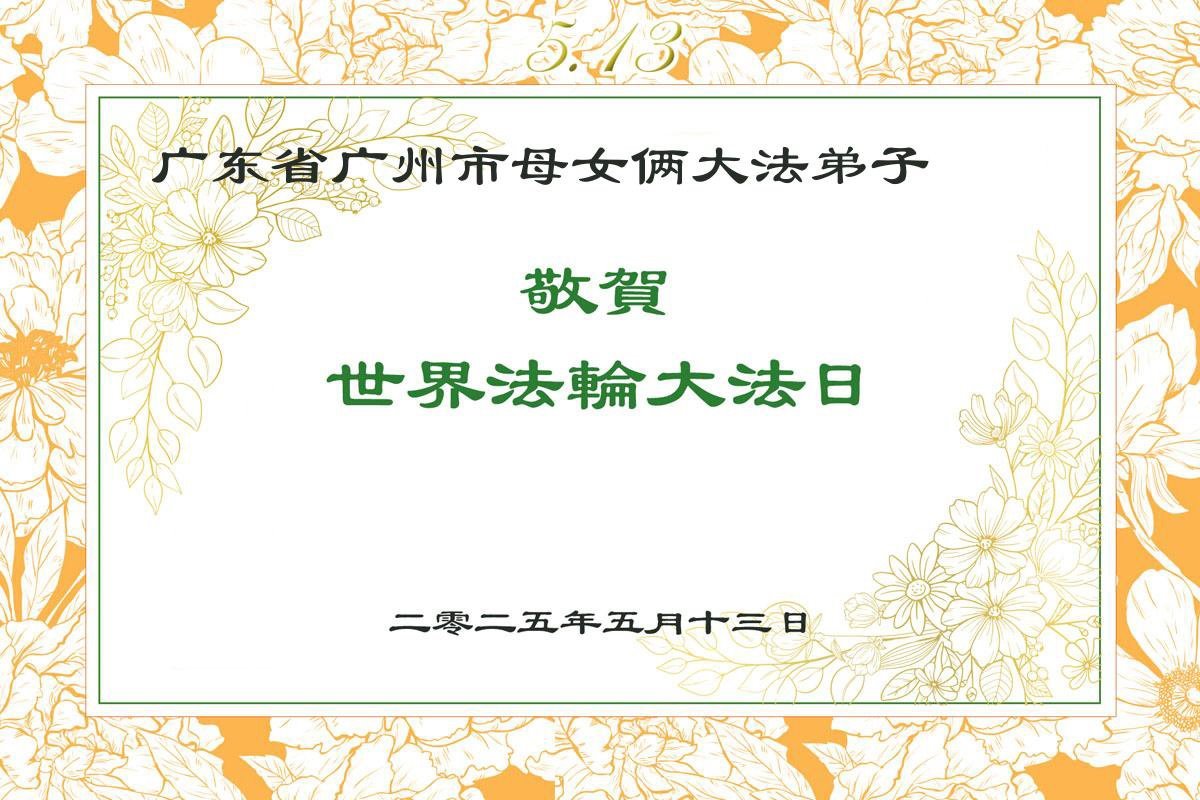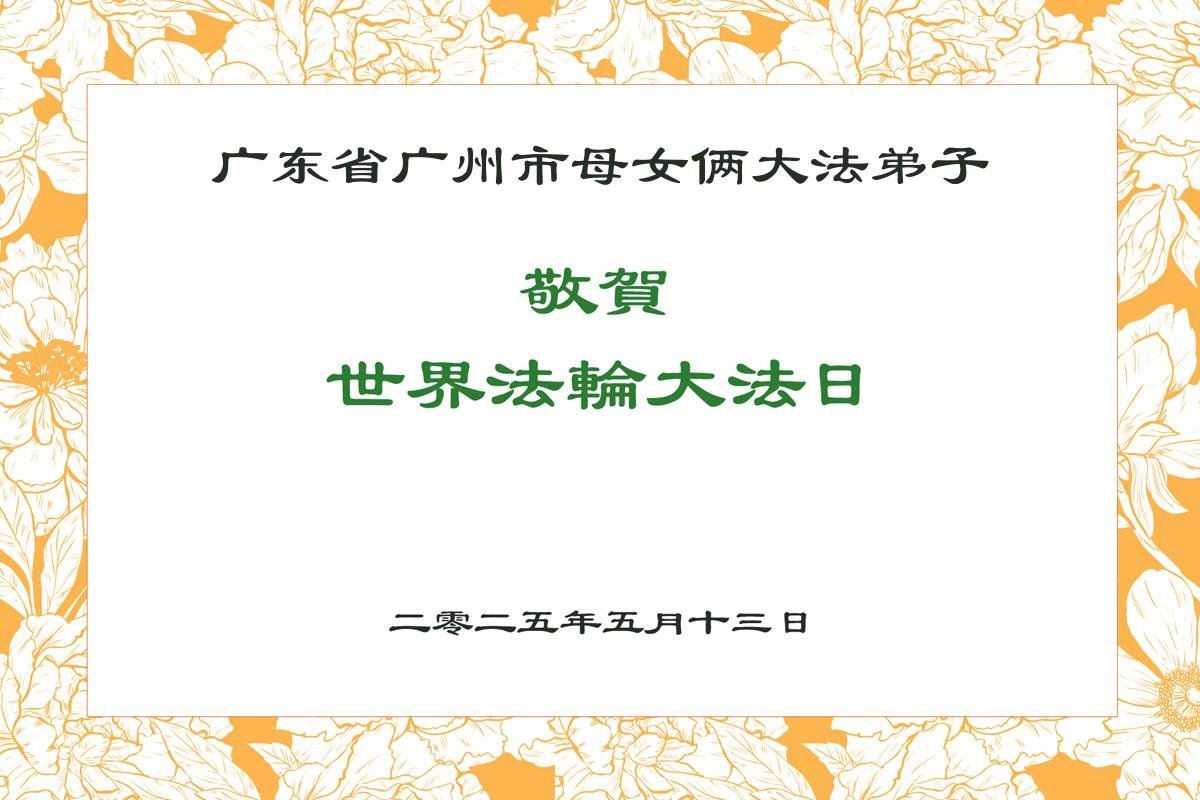 广东省广州市母女俩大法弟子恭贺世界法轮大法日暨敬祝师父生日快乐!