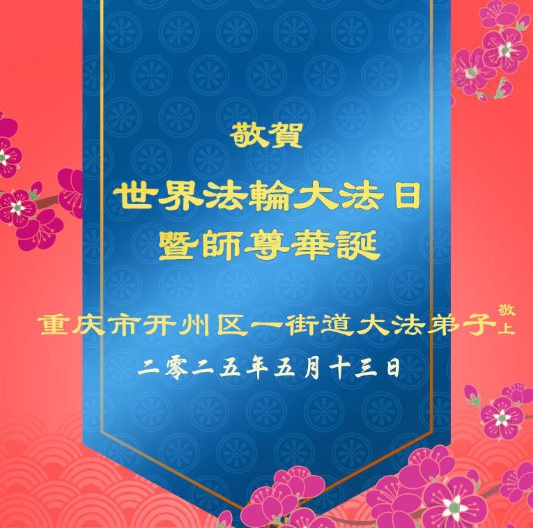 重庆市开州区一街道大法弟子恭贺世界法轮大法日!